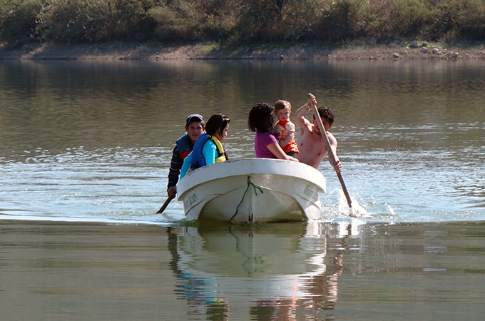 Embarcación operativa de Shel-Ha Solutions con personal equipado realizando labores de supervisión y monitoreo marítimo en zona costera del Golfo de México.