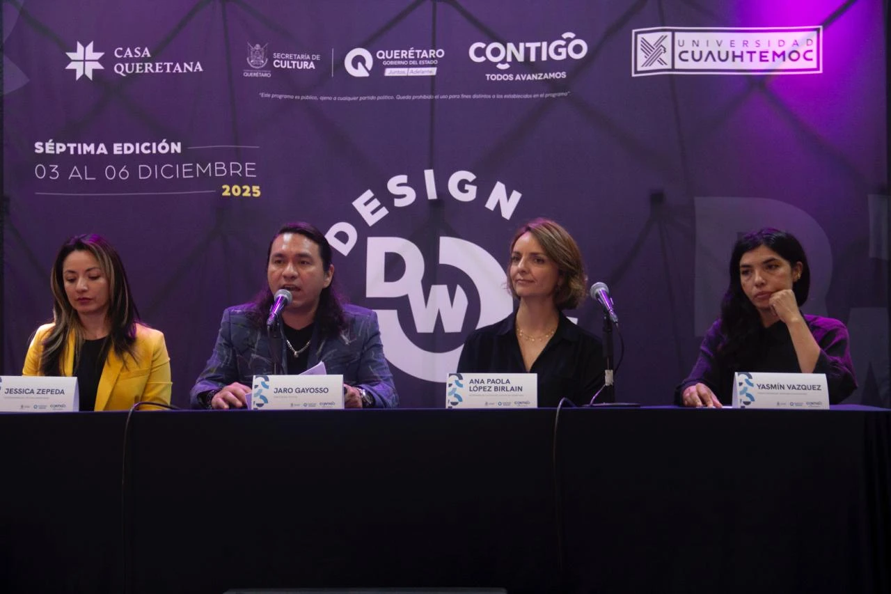 La secretaria de Cultura del estado, Ana Paola López Birlain, presentó la séptima edición del Festival Querétaro Design Week, encuentro que desde 2015 ha dado proyección a más de 300 creativas y creativos locales, consolidándose como un espacio que impulsa oportunidades, fomenta el diálogo y posiciona a Querétaro como un referente nacional e internacional del diseño.