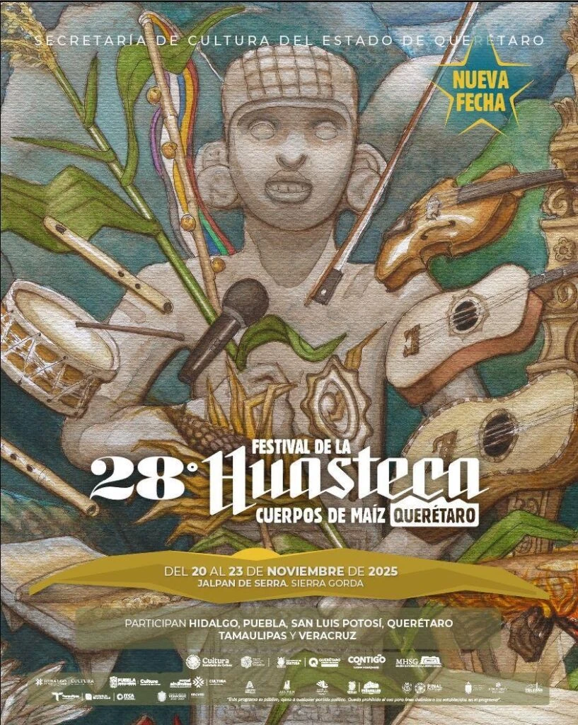 De igual forma, del 20 al 23 de noviembre, Jalpan de Serra recibirá a más de 400 portadores y portadoras de tradición de los seis estados que integran la Huasteca -Hidalgo, Puebla, Veracruz, Tamaulipas, San Luis Potosí y Querétaro-, en la edición número 28 del festival que en esta ocasión tiene como eje temático “Los Cuerpos de Maíz”, un nombre que evoca la vida que se siembra en el cuerpo, la historia que se transmite en la palabra y la identidad que florece, como la milpa, cuando se vive en comunidad.