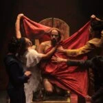 La propuesta visual se inspira en la obra pictórica de George Grosz, particularmente en “El Funeral”, y logra que sobre el escenario el cuerpo se convierta en un narrador, un lenguaje físico intenso que sostiene el existencialismo del texto y da vida a imágenes que dialogan con símbolos religiosos, políticos y sociales.