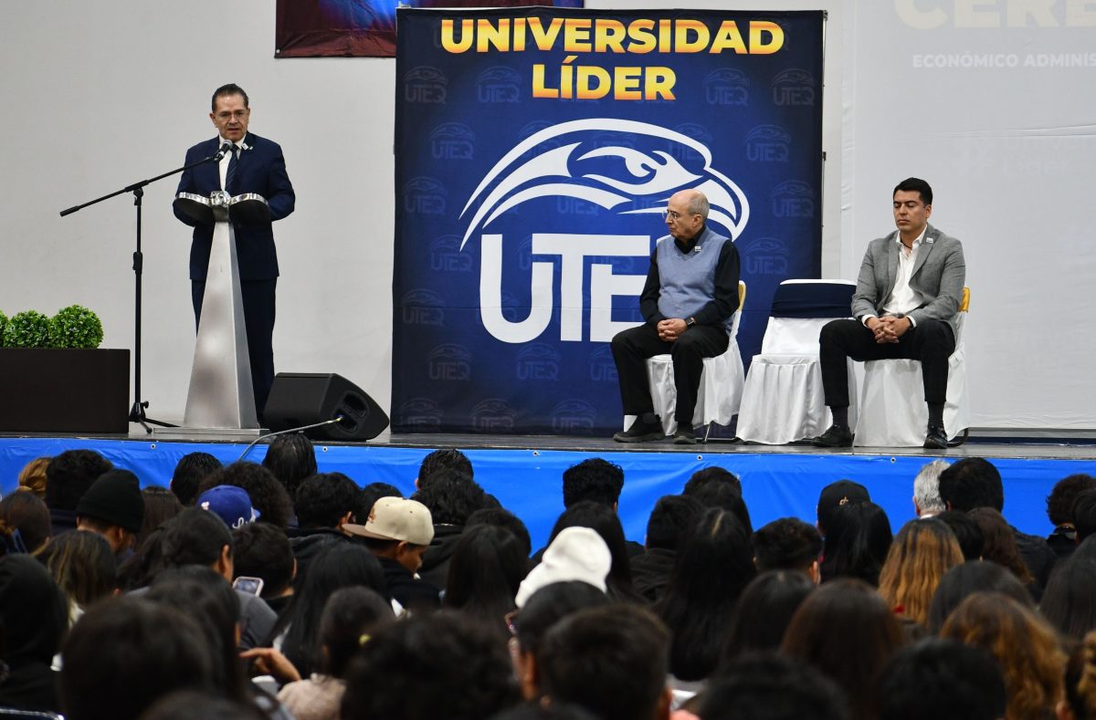 “Alumnos, ustedes no son espectadores del futuro: son los autores. El Querétaro del 2050 será el que ustedes construyan. Autoridades que nos acompañan, consideren a la UTEQ como aliada estratégica del Querétaro del futuro. Nuestra universidad contribuye como generadora de conocimiento aplicado, ofreciendo evidencia, datos, modelos e innovación para enfrentar los desafíos del estado.”