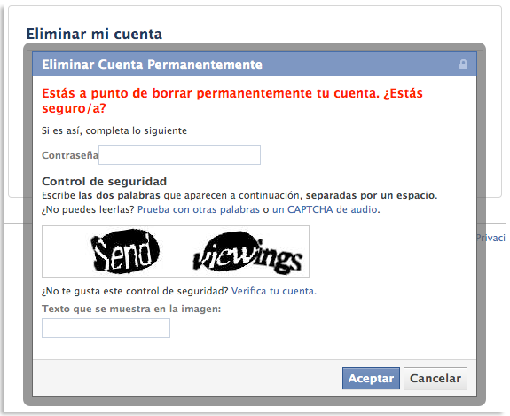 Eliminar cuenta de Facebook