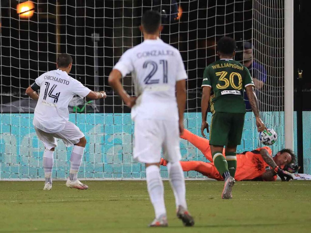 El mexicano Javier Chicharito Hernández vivió las dos partes de la moneda con Los Ángeles Galaxy al fallar un penal y minutos después estrenarse como goleador, en la derrota que sufrieron 2-1 ante Portland Timbers en el torneo de reanudación de la MLS.