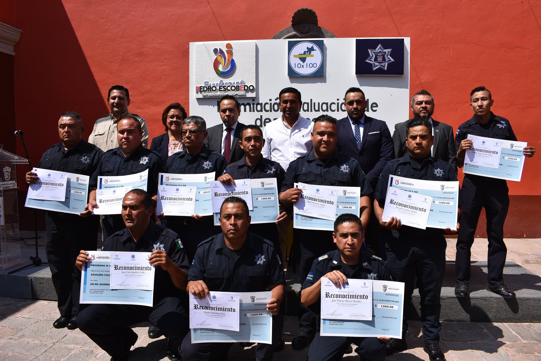 Querétaro, 8 de agosto.- “Quiero reconocer a los elementos que integran la Secretaría de Seguridad Pública, por su lealtad para salvaguardar la paz y el orden entre la ciudadanía escobedense, ya que son ellos quienes evalúan su trabajo”, subrayó el Presidente Municipal de Pedro Escobedo, Amarildo Bárcenas, durante la entrega de estímulos de “Evaluación al Desempeño” a elementos policiacos de la Secretaría de Seguridad Pública de Pedro Escobedo.