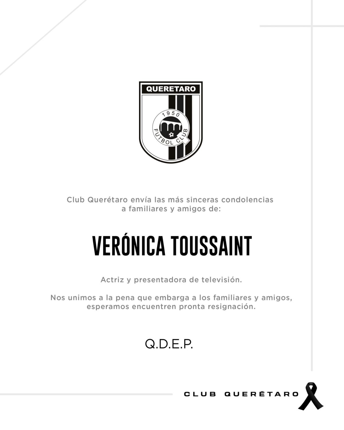 Los Gallos Blancos enviaron sus condolencias a familiares y amigos de la conductora Verónica Toussaint, quien falleció el pasado jueves 16 de mayo y quien en el 2018 fue madrina del equipo.