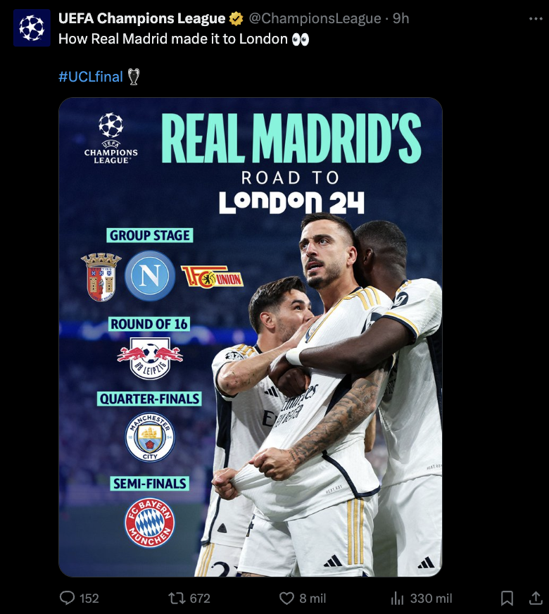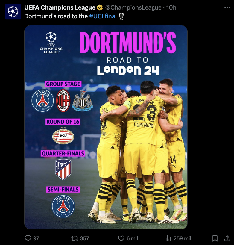 Llegó el momento del partido más esperado por todos los aficionados al fútbol en el mundo, la gran final de la UEFA Champions League, la cual en esta ocasión enfrenta por primera ocasión al Real Madrid frente al Borussia Dortmund.