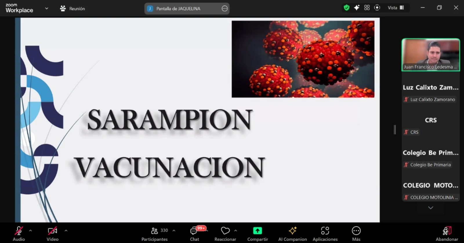 Con la finalidad de establecer medidas preventivas para salvaguardar la salud de niñas, niños y adolescentes, principalmente de educación básica y media superior, la secretaria de Educación del Estado de Querétaro (SEDEQ), Marha Soto, sostuvo una reunión virtual con personal de la Secretaría de Salud (SESEQ) y directivos de escuelas privadas, para establecer un protocolo de acción ante casos confirmados de sarampión en las escuelas.