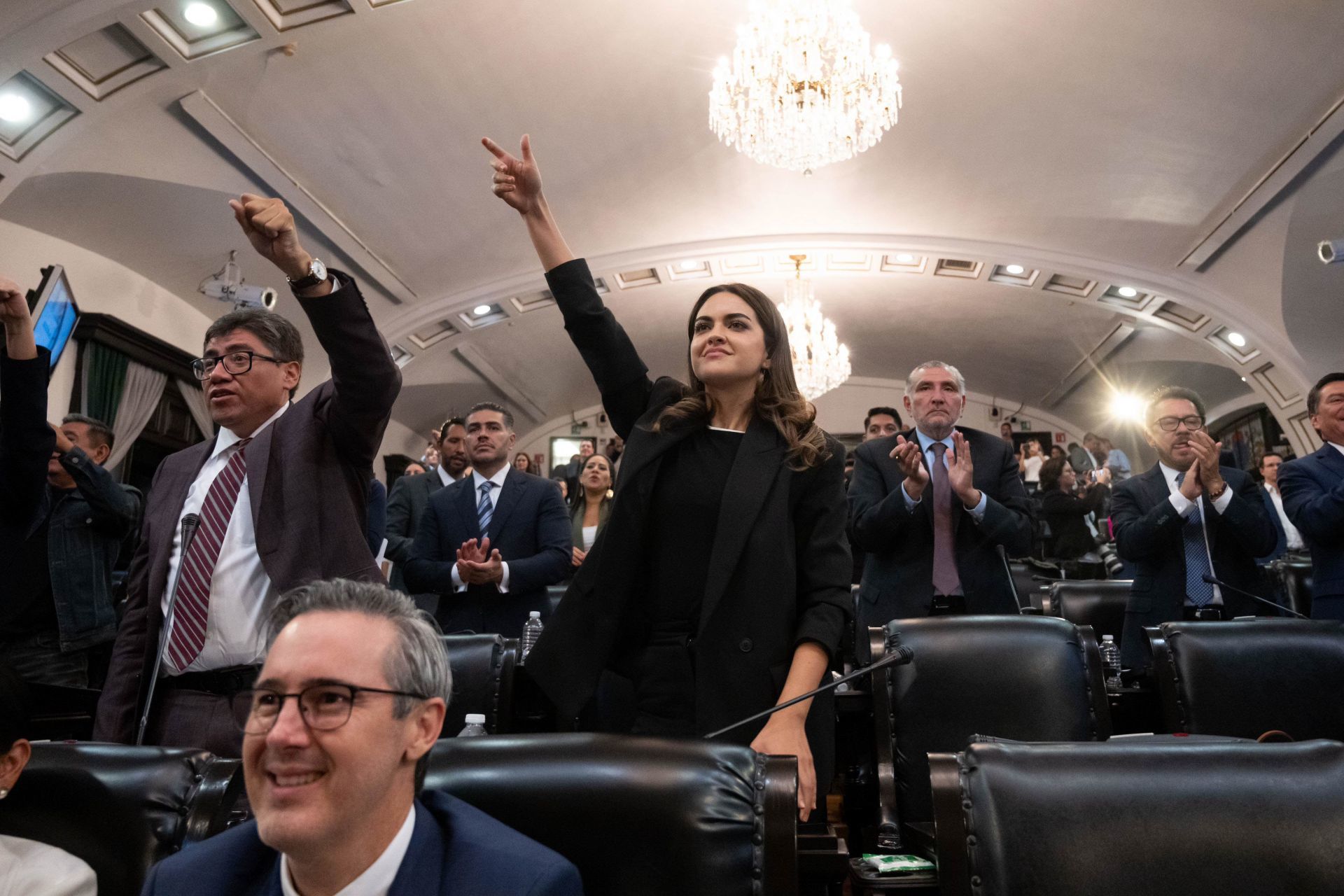 CIUDAD DE MÉXICO, 11SEPTIEMBRE2024.- Senadores de Morena festejan la aprobación de la Reforma del Poder Judicial en la Vieja Casona de Xicoténcatl. FOTO: CUARTOSCURO.COM