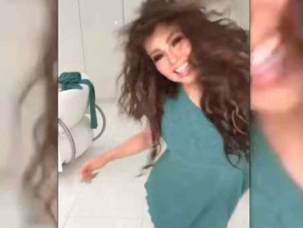Ciudad de México, 2 febrero 2018.- La actriz y cantante Thalía escenificó la coreografía deMarimar, la famosa telenovela que protagonizó en 1994, y publicó un video bailando el tema musical del melodrama, pero en un giro el atuendo la traicionó y mostró una parte del trasero.