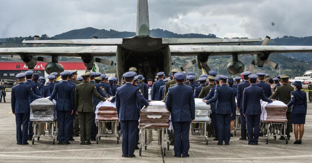 Bogotá, 3 de diciembre.- Con honores militares, la Fuerza Aérea Colombiana (FAC) despidió los restos de los 64 brasileños que fallecieron el lunes pasado en un accidente de un avión de la aerolínea boliviana LaMia, en el departamento de Antioquia.