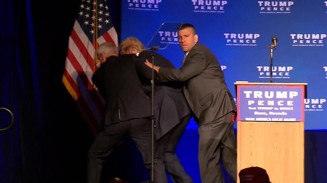 Washington, 5 de noviembre.- El candidato presidencial republicano, Donald Trump, fue retirado esta noche de un templete y puesto bajo resguardo del Servicio Secreto debido a una amenaza a su seguridad, en un acto de campaña en Reno, Nevada.
