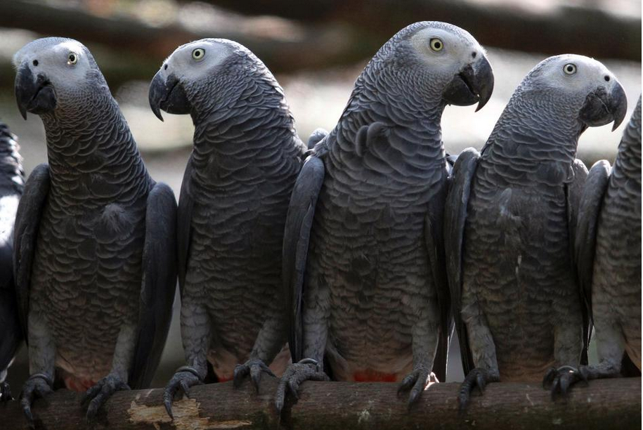 Billy, Eric, Tyson, Jade y Elsie llegaron en agosto a la colonia de 200 loros grises africanos del Centro de Fauna Silvestre Lincolnshire, y pronto mostraron su afición por el lenguaje malsonante.