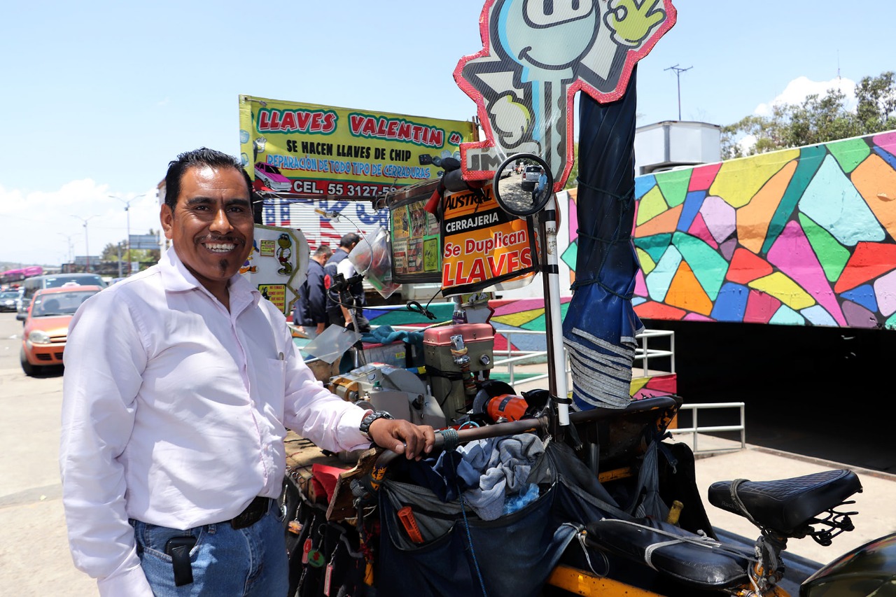 Ciudad de México, 25 Julio.- Valentín Ortega González, originario de Puebla, dejó a los 17 años su trabajo en el campo para viajar a la Ciudad de México y convertirse en emprendedor. Actualmente es la única persona en la Central de Abasto que cuenta con una cerrajería móvil.