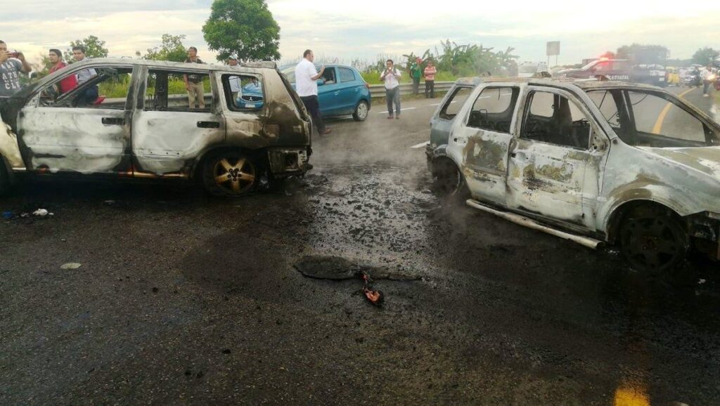 Al final del dia policías Federales y Estatales y la Fiscalía del Estado llegaron al lugar con bomberos a remover los autos y empezar las investigaciones.