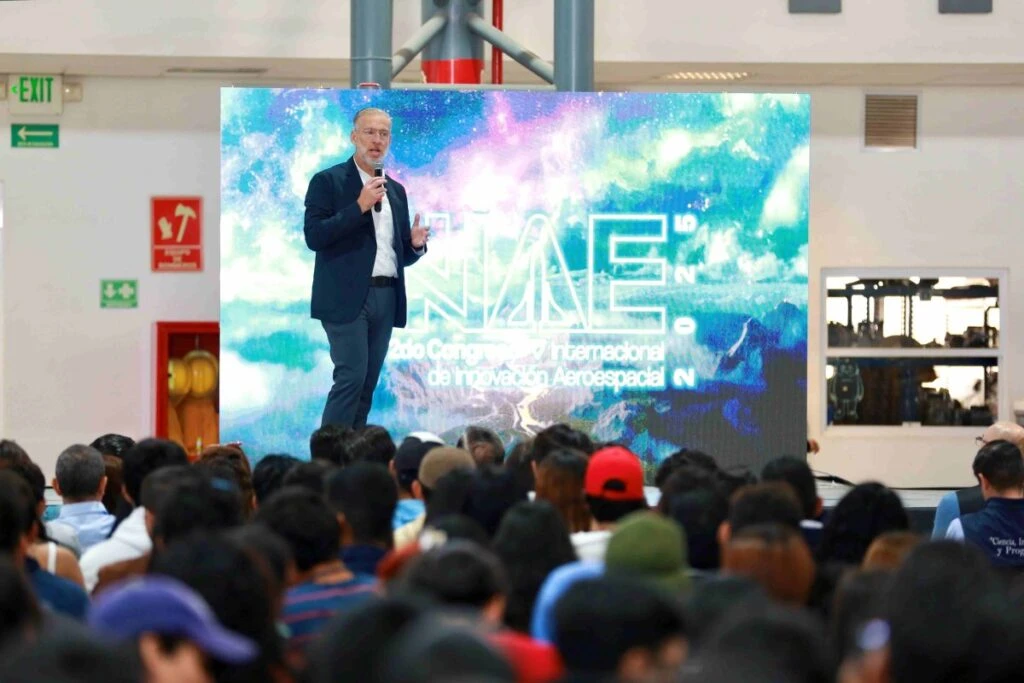 Durante su mensaje, señaló que el INAE es punto de encuentro para investigadores, emprendedores, estudiantes y líderes de la industria y del sector aeroespacial, a fin de explorar las fronteras de la tecnología, compartir ideas y colaborar en la creación de soluciones que transformen el futuro del espacio y la aeronáutica.