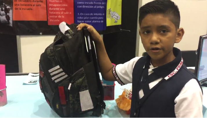 El menor explicó que su proyecto se denomina ‘mochila de seguridad, la mochila que hace la diferencia entre la vida, la muerte y la desaparición’, “la problemática es que lamentablemente en la actualidad, en muchos lugares de mi ciudad y estado se presentan robos, asaltos, secuestros, balaceras; por tal motivo se diseñó una mochila que nos mantiene más seguros”, indicó.