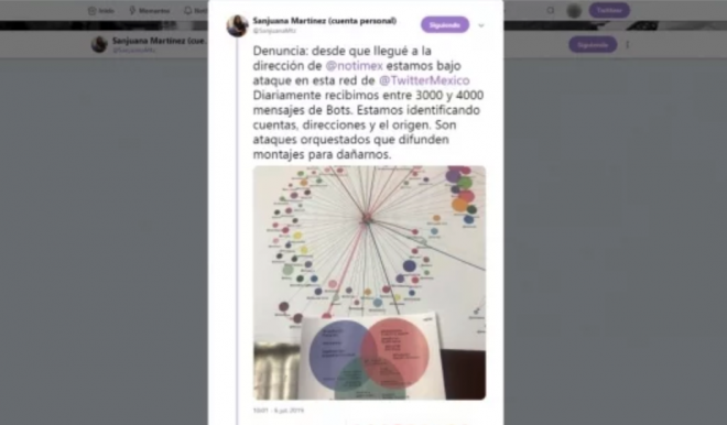 “Estamos bajo ataque en esta red (…) Diariamente recibimos entre 3000 y 4000 mensajes de Bots. Estamos identificando cuentas, direcciones y el origen. Son ataques orquestados que difunden montajes para dañarnos”, escribió Martínez