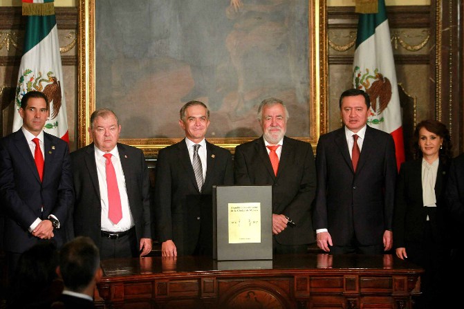Ciudad de México, 5 de febrero.- El jefe de gobierno capitalino, Miguel Ángel Mancera Espinosa, encabezó la Ceremonia de la Firma del Decreto Promulgatorio que ordena la Publicación de la Constitución Política de la Ciudad de México.