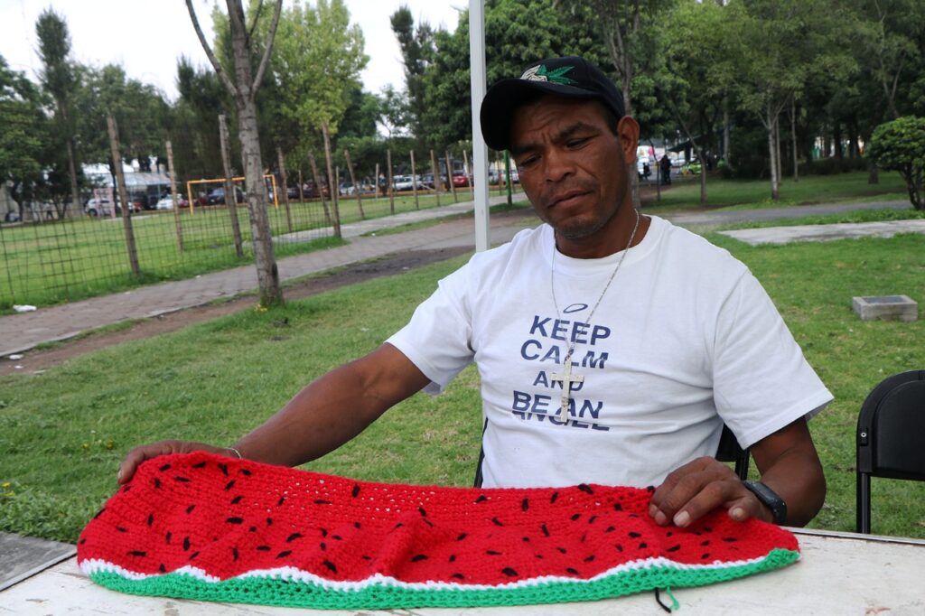 “Me siento orgulloso de tejer en este taller, y ayudar a los muralistas porque sé que al rato mis piezas le van a dar otra vista al mercado”, dijo Armando Cruz.