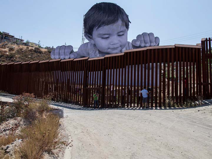 Tecate, 9 de septiembre.- La cara del niño de un año y cuatro meses, David Enrique Anchondo Higareda, nacido en el pueblo mágico de Tecate, fue plasmada en el mural sobre la franja fronteriza por el artista francés J.R. y ya conmueve al mundo.