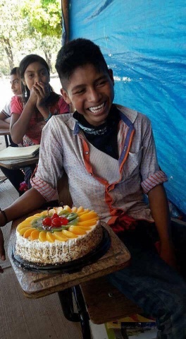 Al menor, originario del poblado de Huaynamota (estado de Nayarit), nunca antes le habían regalado un pastel, por lo que la docente quiso sorprenderlo con uno. El alumno no pudo contener las lágrimas y, con un paliacate, se apresura a secarse el rostro.