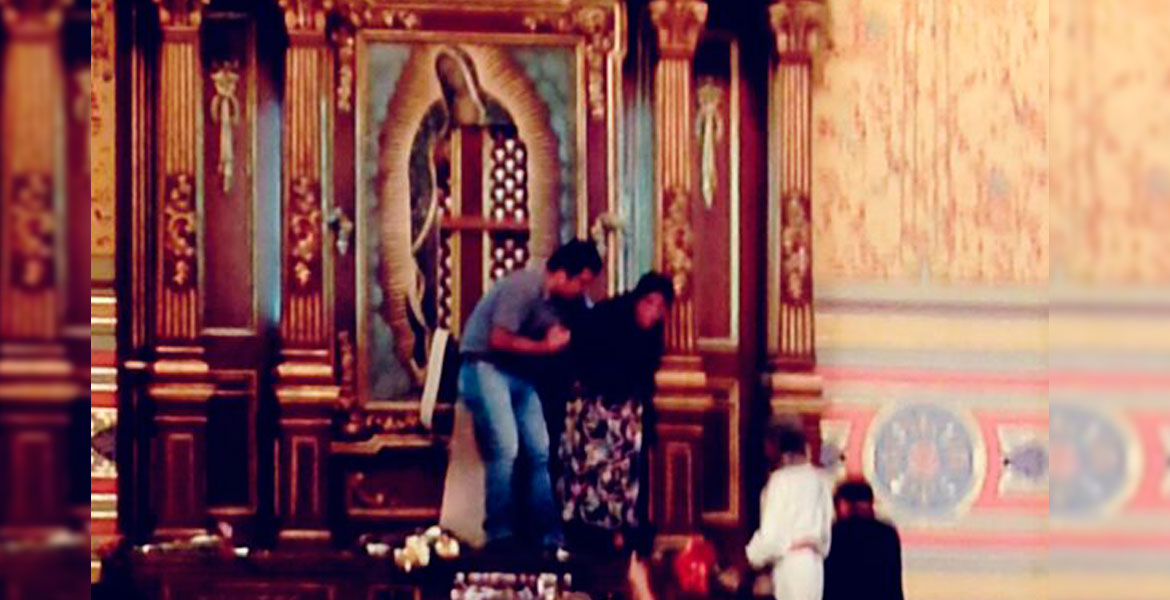 Ciudad de México, 26 de octubre .- Una mujer fue detenida tras realizar un ataque en la Catedral de Tampico, Tamaulipas, en donde destruyó con un mazo diversos objetos y además rompió el lienzo de la Virgen de Guadalupe, por lo que fue puesta a disposición de las autoridades.