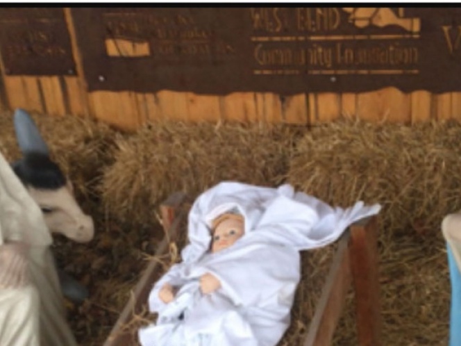 La figura pertenece al nacimiento que se colocó en el Parque Old Settlers de West Bend, una localidad de unas 30 mil personas ubicada a 64 kilómetros al norte de Milwaukee.