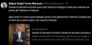 “Por ello, hoy, en mi primera declaración como Senador de la República, quiero extender la mano y manifestar mi disposición a colaborar con el nuevo gobierno federal y estatal para sumar esfuerzos y lograr lo que todos queremos: un México y un Veracruz más próspero y justo, donde podamos vivir con seguridad y en armonía», concluyó.