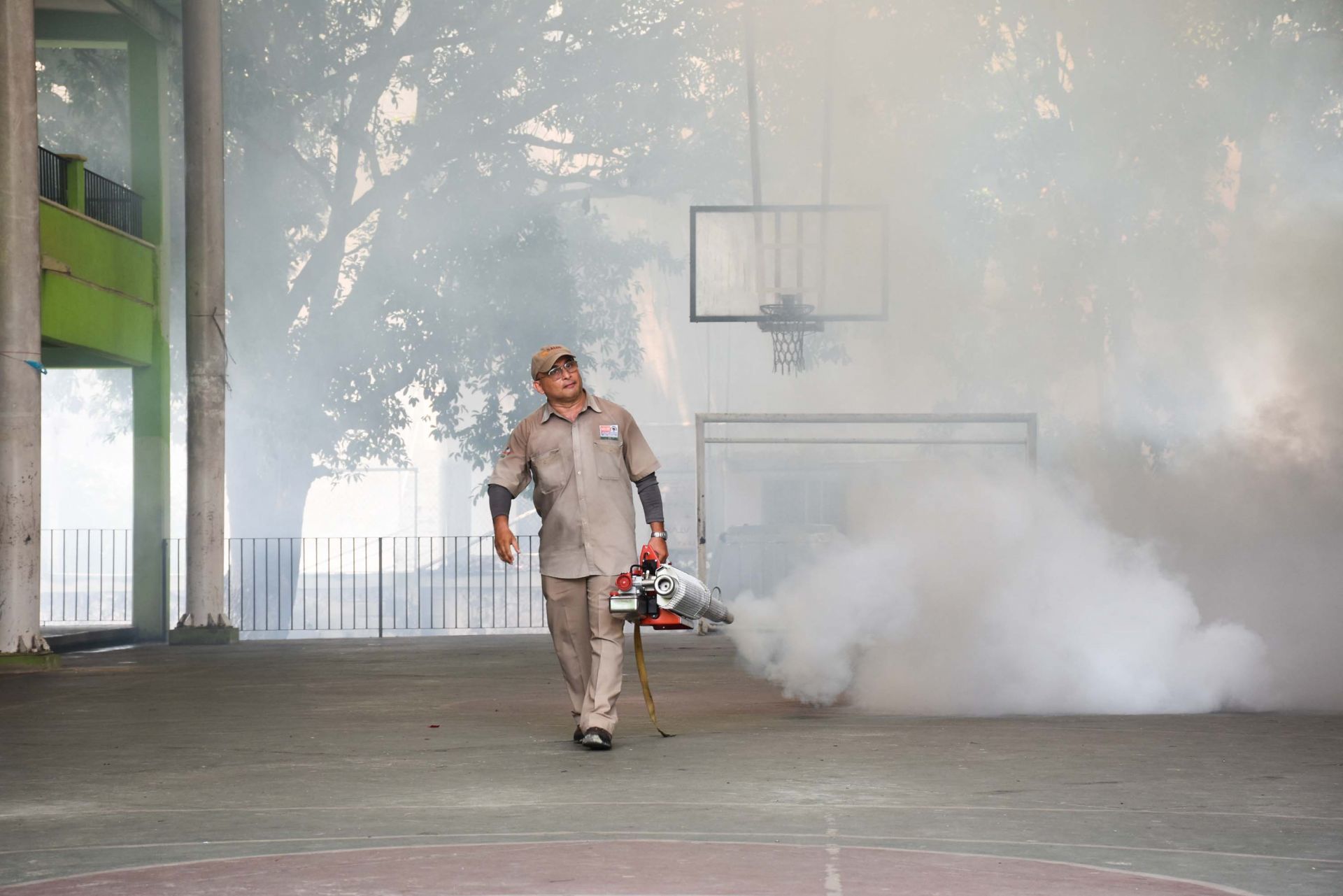CAMPECHE, CAMPECHE 13 DE SEPTIEMBRE 2023.- Vectores de la secretaria de salud realizaron trabajos de termo nebulización en la escuela Presidente Ávila Camacho, esto para prevenir el dengue, zika, y chikungunya ante el incremento del dengue en la ciudad. Cabe señalar que en la península la secretaria de salud ha emitido una alerta epidemiológica preventiva con el objetivo de realizar acciones de prevención contra el mosquito transmisor. FOTO: MICHAEL BALAM/CUARTOSCURO.COM