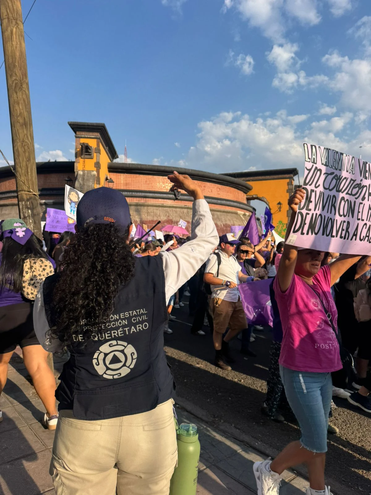 Para salvaguardar la seguridad de las asistentes se implementó un operativo de prevención, supervisado por personal de la Coordinación Estatal de Protección Civil de Querétaro (CEPCQ) y la Secretaría de Gobierno del Estado, con acompañamiento de autoridades estatales y municipales, en apego al Protocolo Nacional para la Atención y Gestión de la Protesta Pacífica.