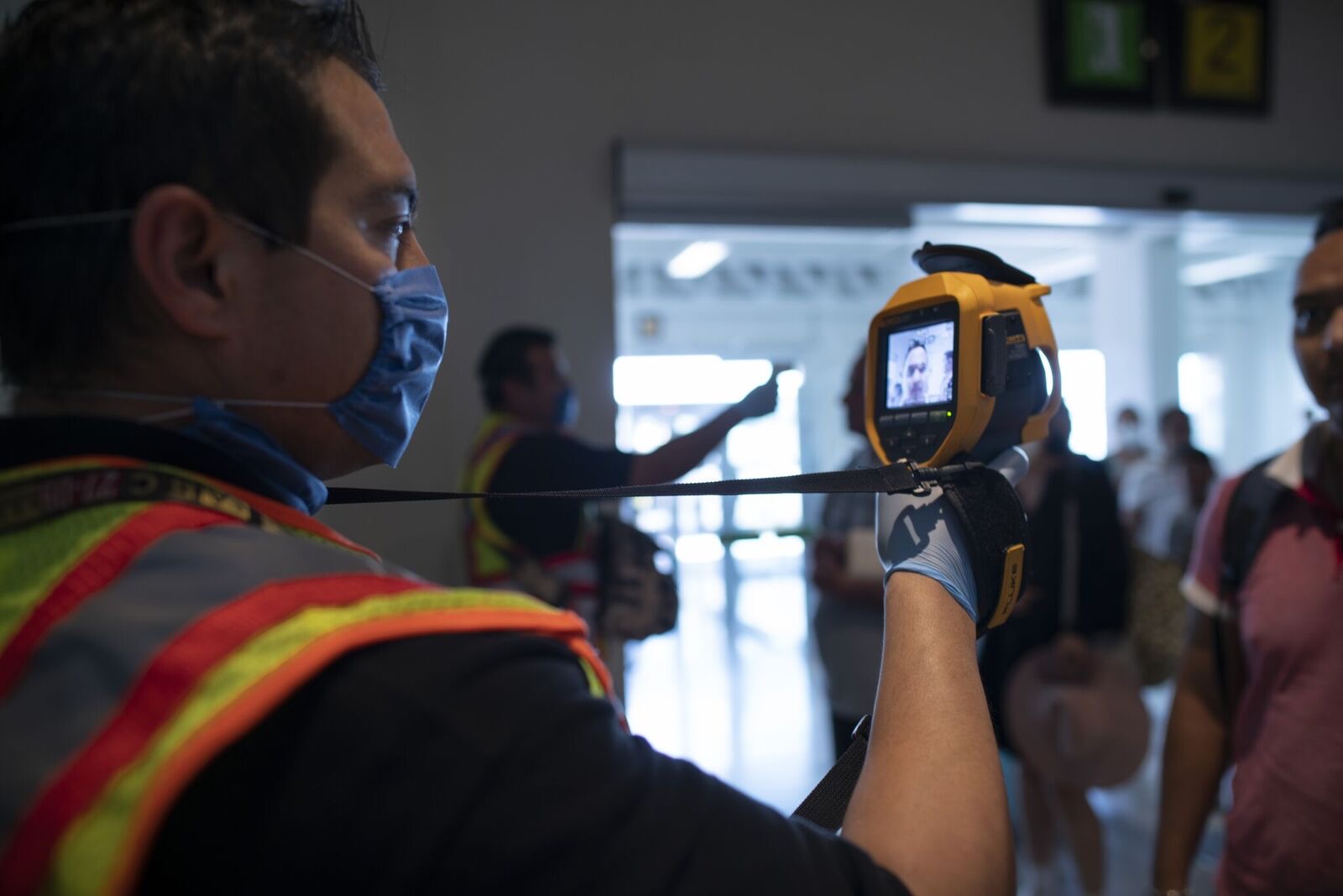 • Uso de una cámara termográfica, en el área de arribo de pasajeros.