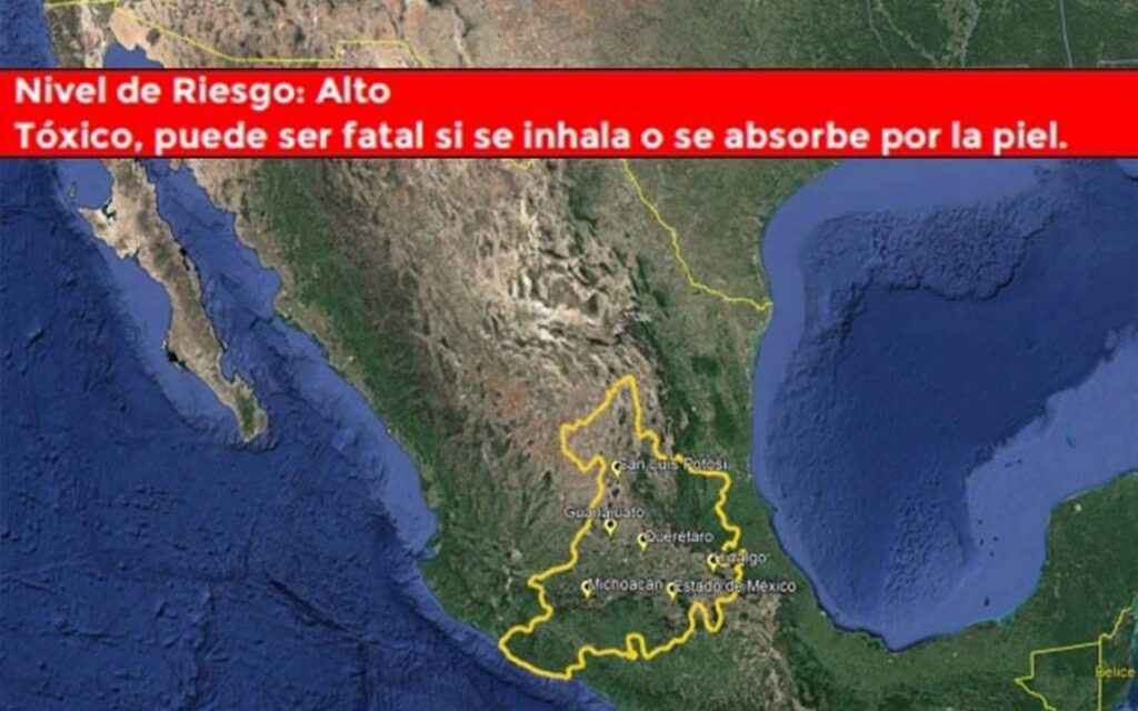 La alerta se emitió para Guanajuato, Hidalgo, Estado de México, Querétaro, San Luis Potosí y Michoacán; ya que el gas cloro es considerado de alto riesgo por su toxicidad que puede llegar a ser fatal si se inhala o se absorbe por la piel.