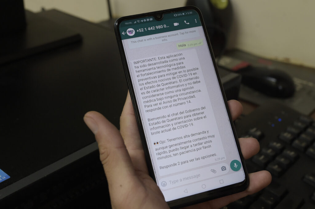 El gobernador Francisco Domínguez Servién anunció el nuevo servicio automatizado «Qrobot», mediante el cual las y los queretanos recibirán, vía WhatsApp y sin salir de casa, respuestas a sus principales preguntas sobre la pandemia de COVID-19, así como orientación médica y psicológica, y recomendaciones para el cuidado y la prevención.