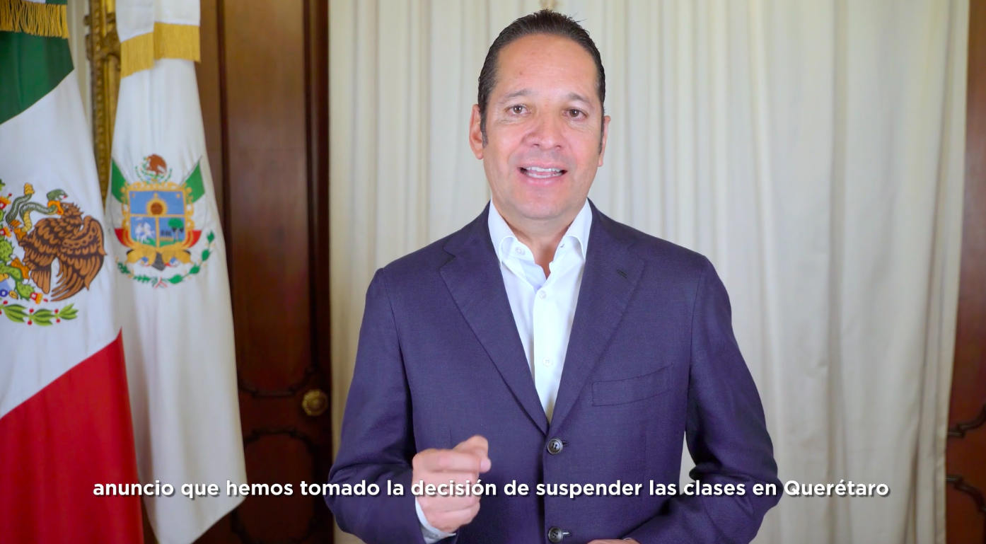 El gobernador del estado, Francisco Domínguez Servién, anunció la suspensión de clases en todos los niveles educativos, en planteles públicos y privados, a partir del próximo miércoles 18 de marzo y hasta el lunes 20 de abril.