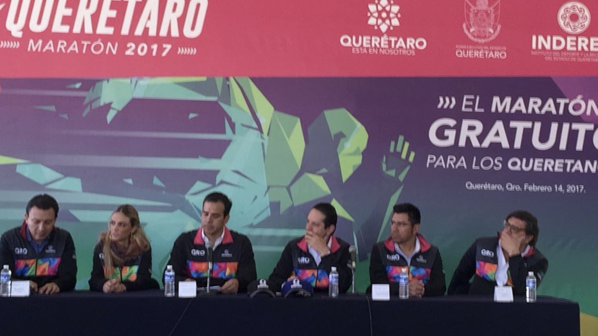 Querétaro, 14 de febrero.- Fue anunciada la edición 2017 del Querétaro maratón, que en esta ocasión será gratuito para los habitantes locales, así lo informó en rueda de prensa el gobernador, Francisco Domínguez.