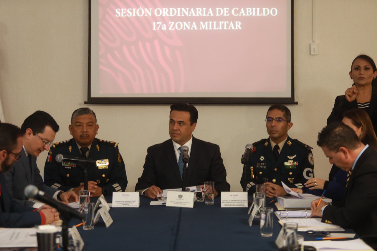 Querétaro, 29 de enero.- En Sesión Ordinaria de Cabildo, llevada a cabo en las instalaciones de la 17va. Zona Militar, el H. Ayuntamiento aprobó por unanimidad la donación de un predio del Fraccionamiento Puertas de San Miguel para la instalación de la Guardia Nacional, en la Delegación Municipal Félix Osores Sotomayor.