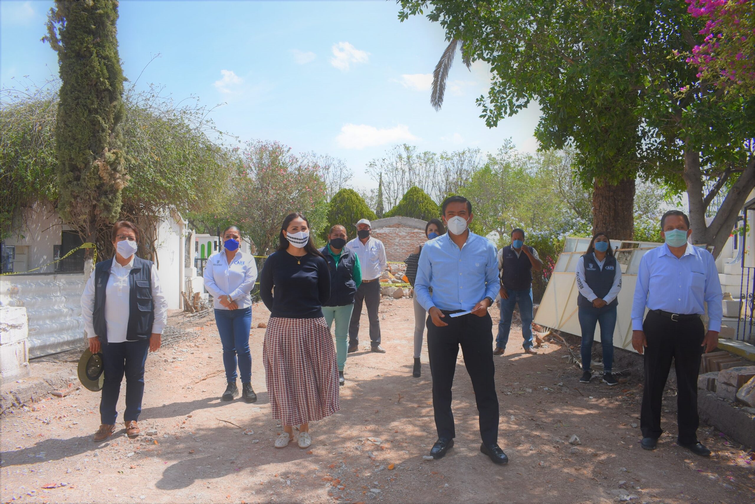Detalló el Edil que, para estos trabajos de mejora de imagen se ejecutarán obras como: mejoramiento del acceso al Cementerio, pavimentación a base de empedrado ahogado, drenaje sanitario y pluvial, red de agua potable, andadores, baños, instalación eléctrica, descanso, gavetas, todo ello con una inversión de Gobierno del Estado de 3.5 millones de pesos.