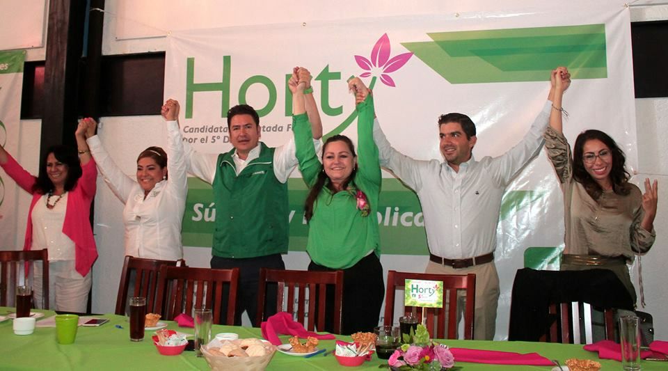 Querétaro, 4 de abril.- El dirigente del Partido Verde Ecologista de México (PVEM) en Querétaro, Ricardo Astudillo Suárez, encabezó el arranque de campaña de Horty Flores, candidata a la diputación federal por el Distrito 5, de quien dijo es la mejor candidata para este Distrito porque representa una mujer con presencia social, que cuenta con estrutura, fuerza y propuesta legislativa sólida que garantiza una elección exitosa para nuestro Partido.