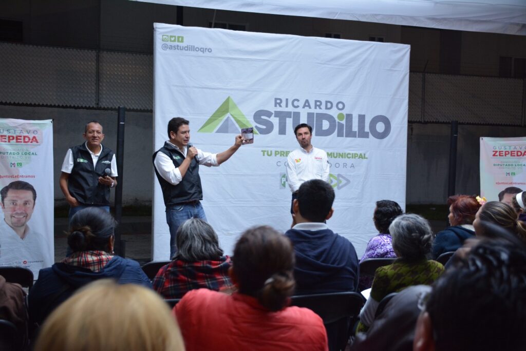 Querétaro, 15 de junio.- Ricardo Astudillo Suárez, candidato a la presidencia municipal de Corregidora por el Partido Verde y PRI, se reunió con vecinos de Candiles y de Rincón Campestre donde coincidieron que uno de los mayores proyectos será el de movilidad en la zona con el paso subterráneo Candiles, además de que propuso una reingeniería de Avenida Candiles para mejorar el tránsito en la zona.