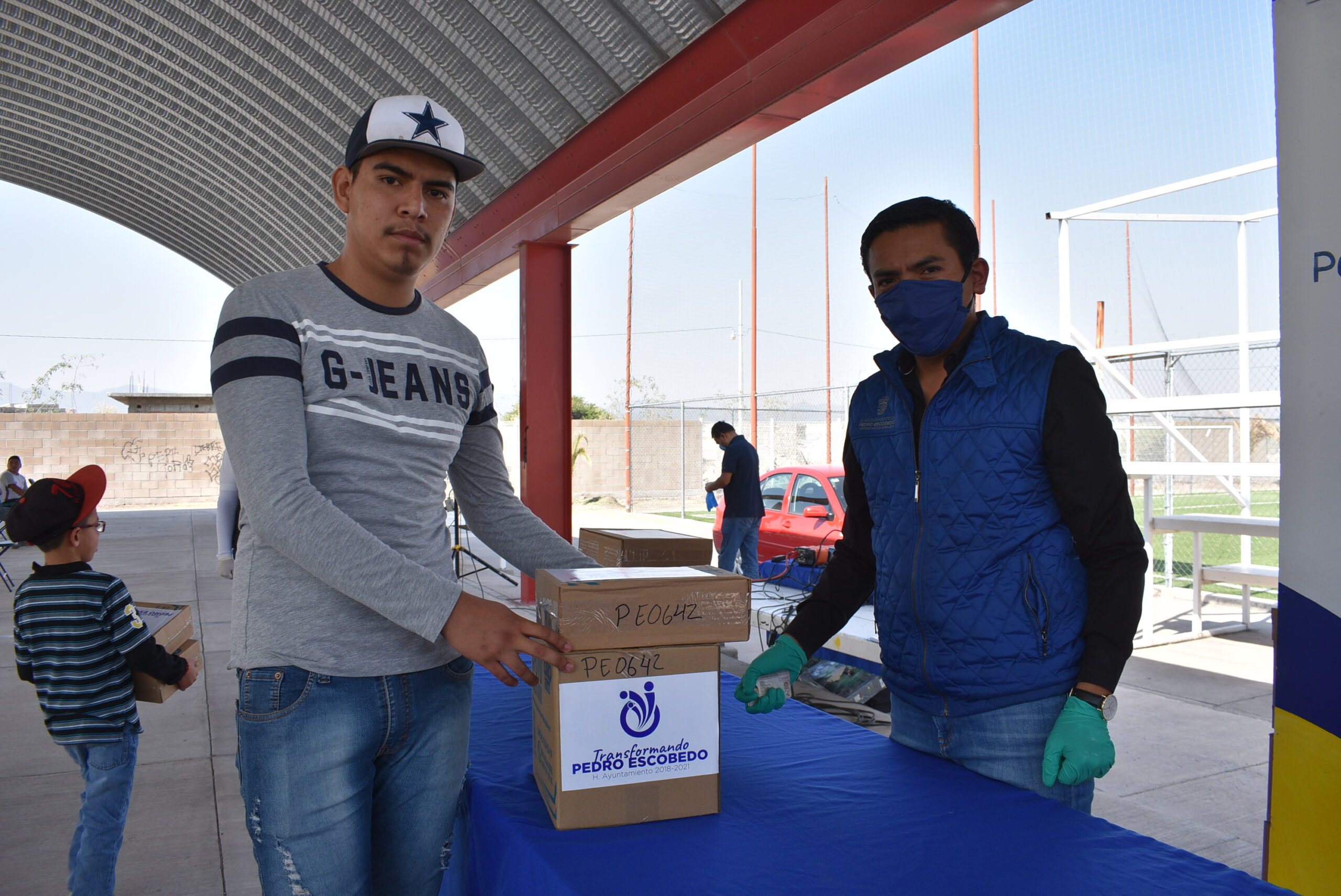 De manera simultánea la Presidencia Municipal de Pedro Escobedo de forma coordinada con el Gobierno del Estado de Querétaro, a través de brigadas conformadas por funcionarios de la Administración, hicieron entrega de ésta ayuda en las comunidades de El Sauz Alto, Sauz Bajo, San Cirilo y La Venta, donde acompañados de Regidoras del H. Ayuntamiento, recorrieron los domicilios de los beneficiarios, donde se resaltó que este apoyo coadyuva en el mejoramiento de su economía familiar a causa de COVID-19.
