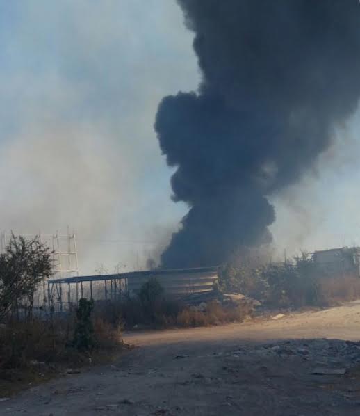 Varias toneladas de cartón comenzaron a incendiarse sin que el personal de la bodega logrará controlarlo, la columna de humo era visible a más de 10 kilómetros de distancia.