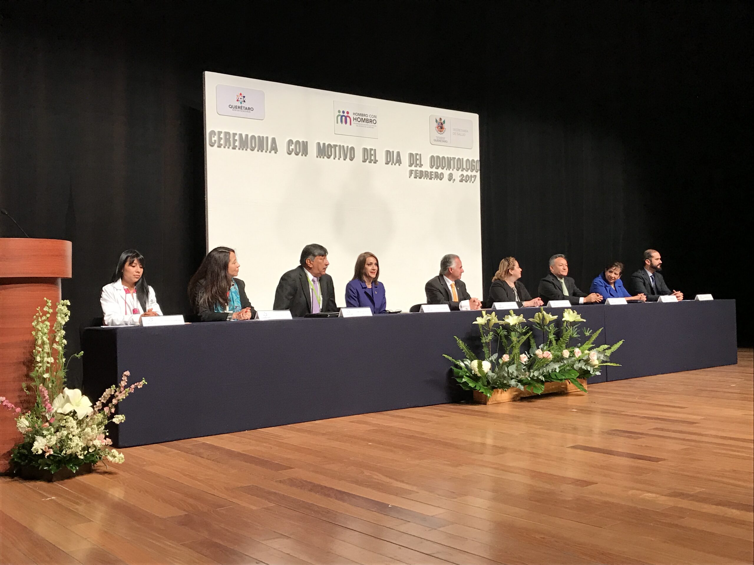 Querétaro, 8 de febrero.- Autoridades en materia de salud celebraron en Querétaro el día del odontólogo, en un evento realizado en el teatro experimental, del centro de congresos.