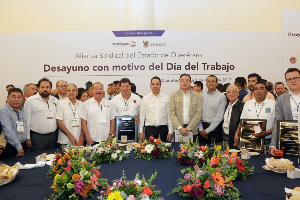 Querétaro, 1 de mayo.- Trabajadores y organizaciones sindicales de Querétaro conmemoraron el día del trabajo, con un desayuno al que asistieron más de mil personas en el Centro de Congresos.