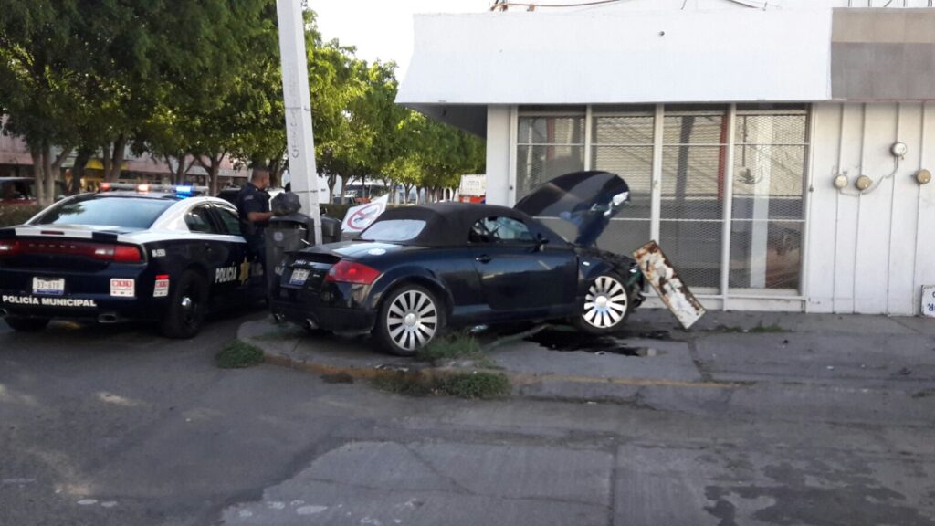 Los hechos se presentaron cuando el conductor de de un audi TT color negro, descendía por avenida Corregidora hacia el centro de la ciudad, al llegar al cruce con Florencio Rosas, el conductor perdió el control por el exceso de velocidad al que circulaba.