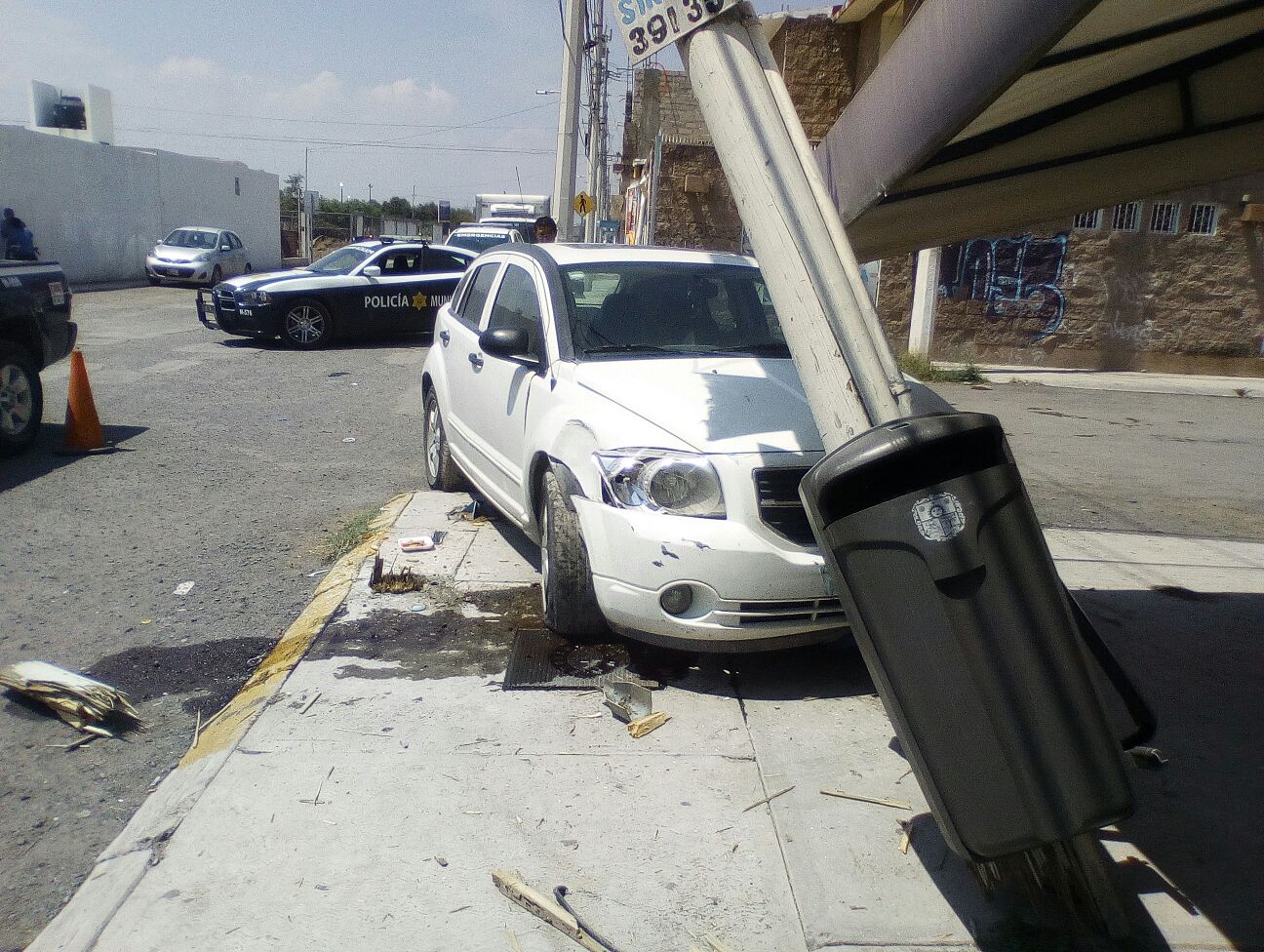 En la huida el conductor perdió el control de su auto y al momento de dar vuelta y se impactó en contra de un poste de madera el cual derribó, el automovilista bajo de su auto y se refugió en su casa.