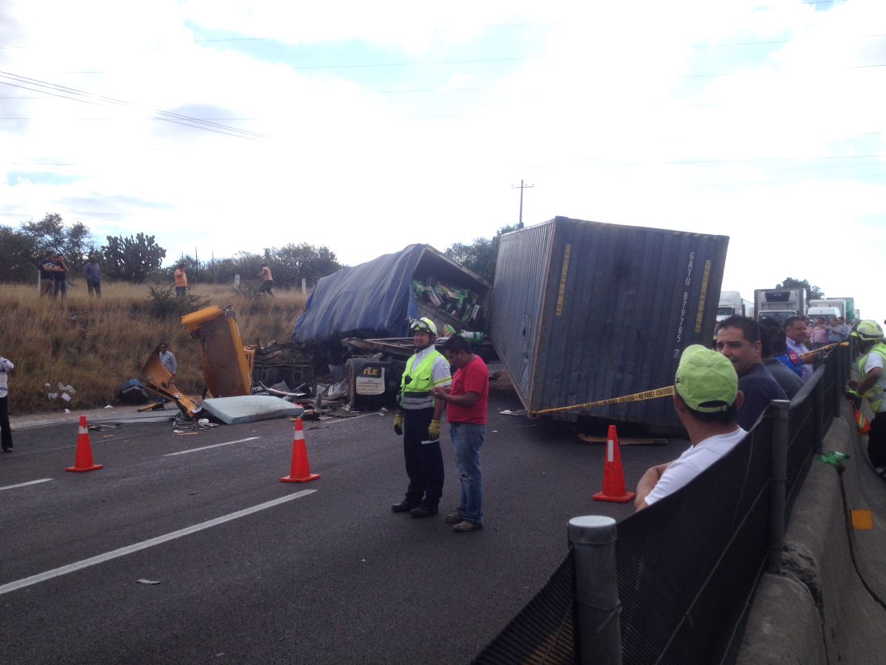 Este accidente se presentó en el kilómetro número 8 de la carretera de cuota a Celaya a tan sólo unos metros del puente del Libramiento Sur Poniente en dirección a Querétaro, uno de los choferes no alcanzó a detener su marcha cuando encontró en el descenso un camión de carga detenido sin orillarse.