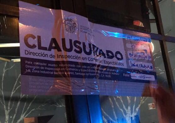 Estos establecimientos se ubican en avenida Constituyentes, y se detalló que la suspensión de uno de ellos se derivó por carecer de medidas de seguridad y no contar con vistos buenos de protección civil.