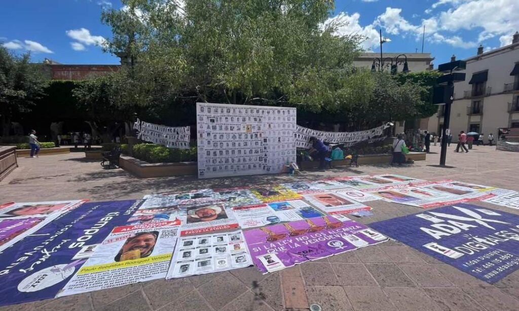 El fin de semana, activistas feministas del colectivo Adax Digitales, colocaron un tendedero con las fotos y fichas de los deudores alimenticios en la Plaza de Armas de la capital queretana.
