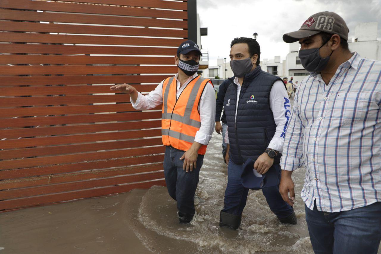 El Presidente Municipal de Querétaro, Luis Nava, acudió a los fraccionamientos Viñedos y Sonterra, para atender a los vecinos que se vieron afectados por las lluvias de este martes por la tarde, y brindarles su apoyo para superar esta contingencia.