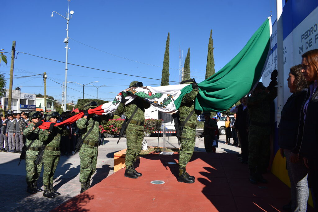 El Presidente Municipal de Pedro Escobedo Amarildo Bárcenas, encabezó el evento para celebrar un aniversario más del “Día de la Bandera”: Acompañado de elementos castrenses del 7º Regimiento Mecanizado de La Llave, San Juan del Río, izaron la Bandera, para posteriormente rendir juramento al Lábaro Patrio.